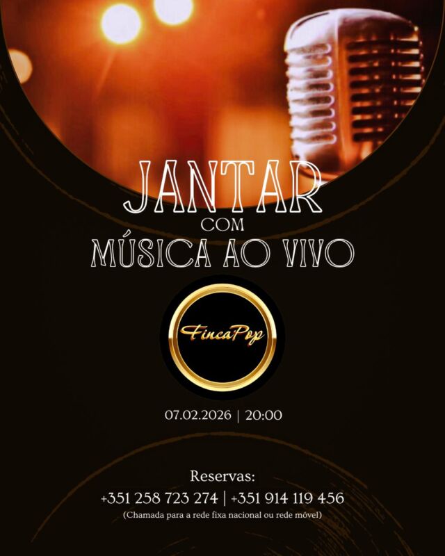 Jantar com Música ao Vivo — 7 de fevereiro | @F1ncaPop Artistas residentes no sul de Espanha, @F1ncaPop trazem ao Retiro...